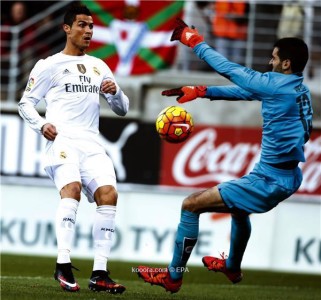 وأهدر رونالدو انفراد محقق أخر بعدما راوغ حارس إيبار ثم يسددها في الشباك الخارجية في الدقيقة 71، قبل أن ينفذ رأسية بجوار القائم في الدقيقة 73، وخرج كوفاسيتش ودخل كاسميرو بديلا لتعزيز خط الوسط في النادي الملكي.