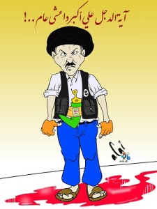 ويوضح الرسام في رسمته الذي عنونها بـ “آية الدجل علي أكبر داعشي عام” , كتعبير أن علي صالح الذي كذب على شعبه طوال سنوات حكمه متعاون مع ايران وأنه هو من يحرك داعش وزعيم المؤتمر الشعبي العام .