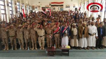 وفي الحفل، أشاد محافظ المحافظة، اللواء حسين العجي العواضي، بدور أبناء الجوف في مواجهة الانقلاب وتحرير المحافظة من مليشيا الحوثي وقوات صالح الإنقلابية.
