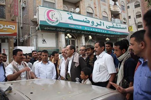 تم اعادة فتح مستشفى الروضة بمدينة تعز اليوم بعد اغلاق دام خمسة أيام من إغلاقه بسبب اعتداء مسلحين مقربين لبعض الجرحى ونهب سيارته.