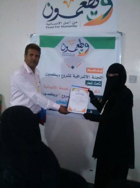 كرم مشروع ويطعمون اليوم الخميس  أعضاء الفريق الميداني للمشروع وفي حفل التكريم تحدث الاستاذ مختار الوجيه  شاكرا  الاستاذة منى لقمان رئيس مشروع ويطعمون   وللجنة الإشرافية للمشروع التي حملت على عاتقها المسؤولية الدينية والإنسانية وعملت دومآ على تقديم مد يد العون لأبناء تعز من أجل التخفيف من معاناتهم والوقوف معهم في أشد الظروف لاسيما في ظل الحرب والحصار الذي تمر بها مدينة تعز