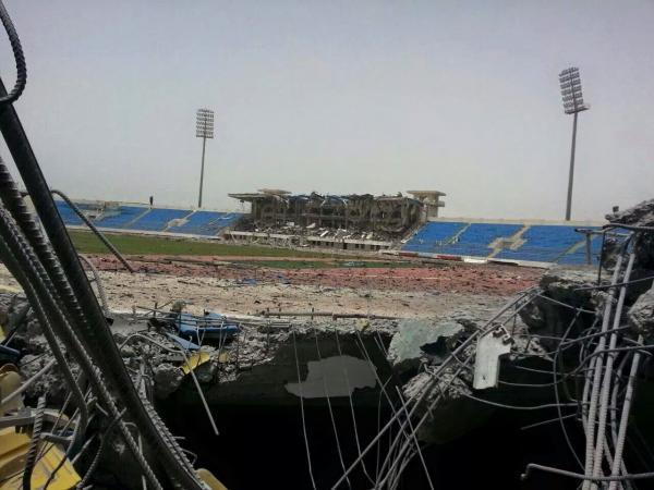 وقال مصدر محلي أن القصف أدى إلى انفجارات عنيفة داخل الاستاد، مما يُرجح أن الضربات الجوية استهدفت آليات عسكرية.