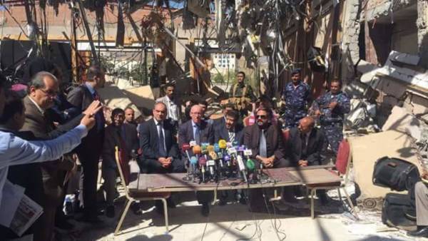 وفي نفس السياق زار ممثل الامم المتحدة في اليمن مكان الانفجار في الصالة الكبري وعقد مؤتمر صحفي دعا الى تشكيل تشكيل لجنة دولية للتحقيق في ما حدث في الصالة الكبري .