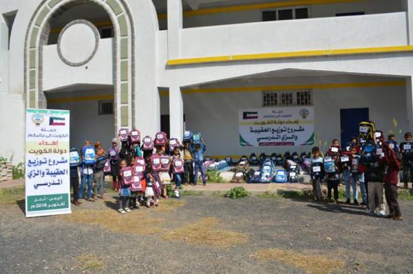الرئيسية » الهيئة اليمنية الكوتية للإغاثة توزع الحقيبة والزي المدرسي لطلاب محافظة تعز اليمن