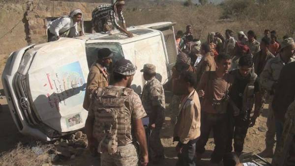 وقالت مصادر اعلامية أن مراسل قناة الإخبارية السعودية ومحرر موقع “شعب أونلاين” الزميل محمد الحذيفي , ومراسل قناة سهيل الزميل محمد يوسف , ومراسل قناة بلقيس الزميل حمزه أمين , ومراسل قناة الغد المشرق مهيب المريري, وعدد من المصورين قد تعرضوا لحادث مروري في منطقة البريين بالمعافر أثناء خروجهم لتغطية مسار المعارك الميدانية في منطقة الكدرة والوازعية جنوب غرب مدينة تعز .