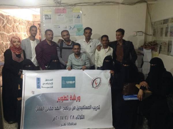 عقد منتدى آفاق التغيير C.H.F امس الثلاثا فمنتدى تعز ورشة عمل بعنوان تطوير تدريب المستفيدين من برنامج النقد مقامل العمل، حيث دعي إليها احدى عشر مشارك/ مشاركة من فرق تدريب المهارات الحياتية للرجال، والمهارات الحياتية للنساء ومثقفات التوعية والمنسقين، واوضحت رئيسة المنتدي بلقيس العبدلى ان الورشة خرجت بعدد من التوصيات والتي سيتم رفعها ضمن التقارير الختامية للصندوق الاجتماعي للتنمية والتي تصب في تطوير الأدلة التدريبية وبناء قدرات المدبين والمدربات بشكل مستمر