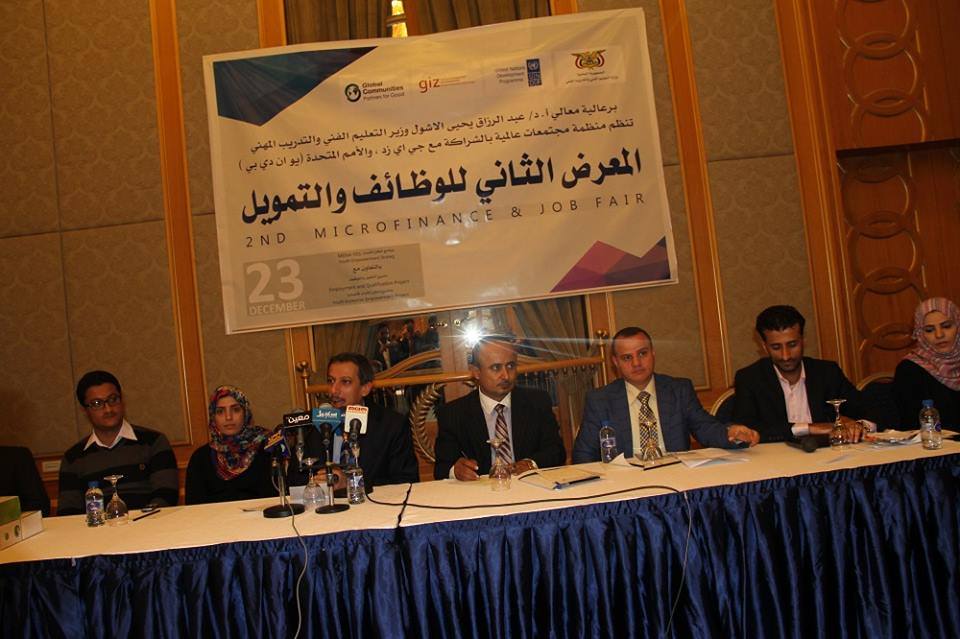 وأشار الوزير الأشول لدى افتتاحه اليوم بصنعاء، المعرض الثاني للوظائف والتمويل الذي نظمته منظمة مجتمعات عالمية بالتعاون مع مشروع التأهيل والتوظيف بالوكالة الألمانية “جي أي زد” وبرنامج الأمم المتحدة الإنمائي “يو إن دي بي”، إلى أهمية هذه المبادرة والتعاون والتنسيق مع عدد من منظمات المجتمع المدني المحلية والعالمية بهدف تمكين الشباب اقتصادياً من خلال تدريبهم بمهارات مهنية وحياتية وفقا لمتطلبات سوق العمل ومن ثم تسويق هذه المخرجات وتوزيعها على القطاع الخاص.